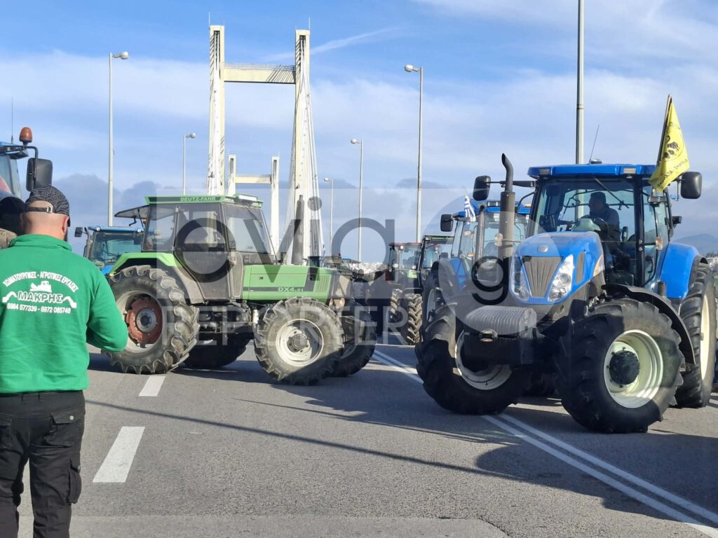 Αγροτικό μπλόκο στην Υψηλή Γέφυρα Χαλκίδας – Κλειστά και τα δύο ρεύματα από αγρότες της Εύβοιας