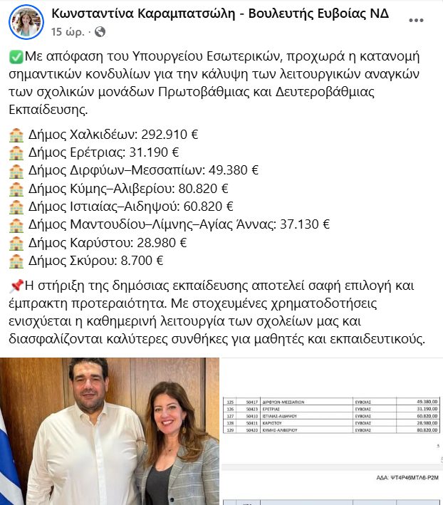 Σε έντονο ύφος τοποθετήθηκε ο Περιφερειακός Σύμβουλος Στερεάς Ελλάδας και αιρετό μέλος των υπηρεσιακών συμβουλίων εκπαίδευσης, Ιωάννης Αλεξίου, απαντώντας σε δημόσια ανάρτηση της βουλευτή Εύβοιας της Νέας Δημοκρατίας, Κωνσταντίνας Καραμπατσώλη.