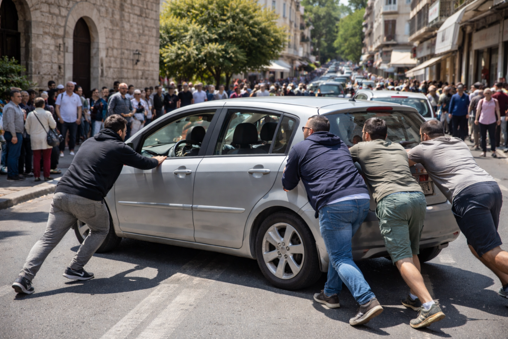 Άμεσα, περαστικοί έσπευσαν να βοηθήσουν τον νεαρό οδηγό, σπρώχνοντας το όχημα ώστε να απομακρυνθεί από το οδόστρωμα και να αποκατασταθεί η κυκλοφορία.