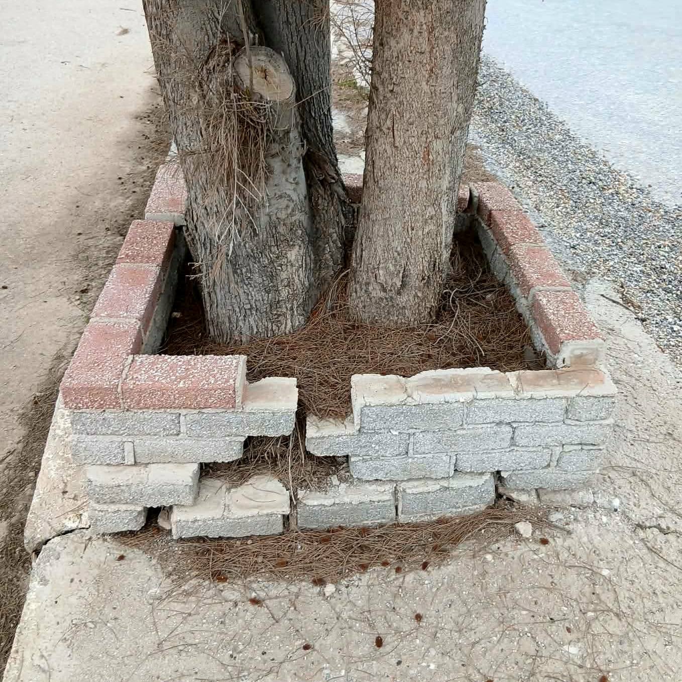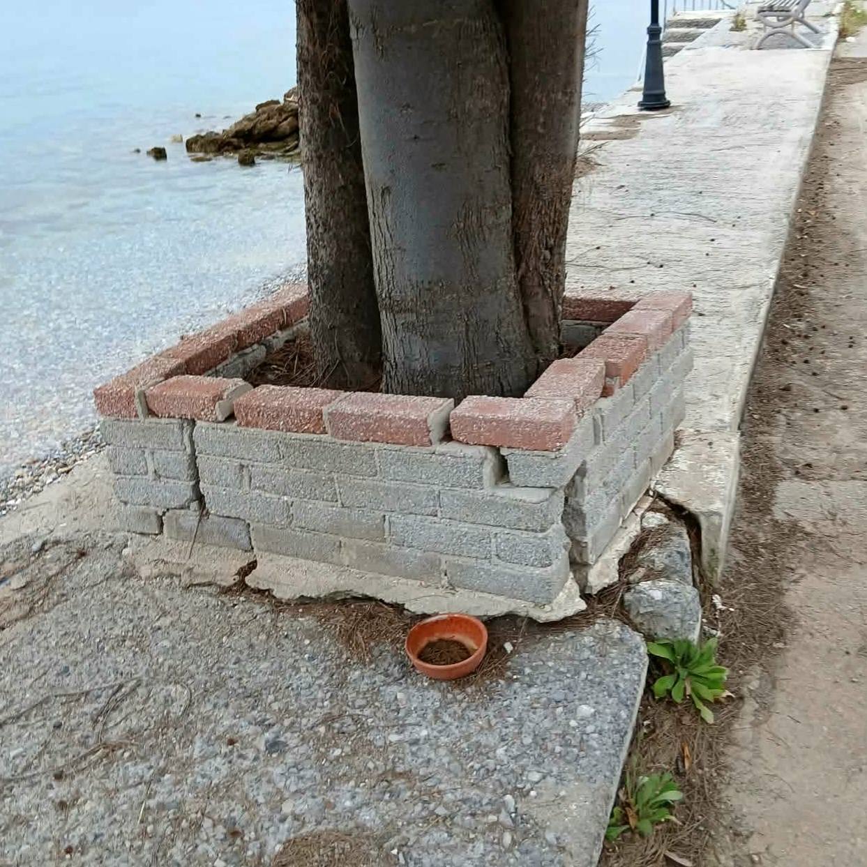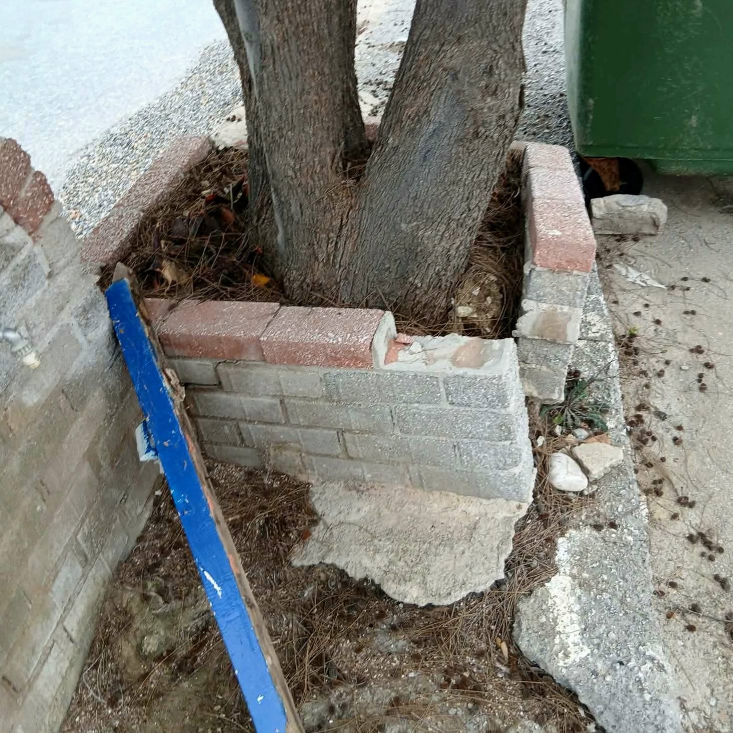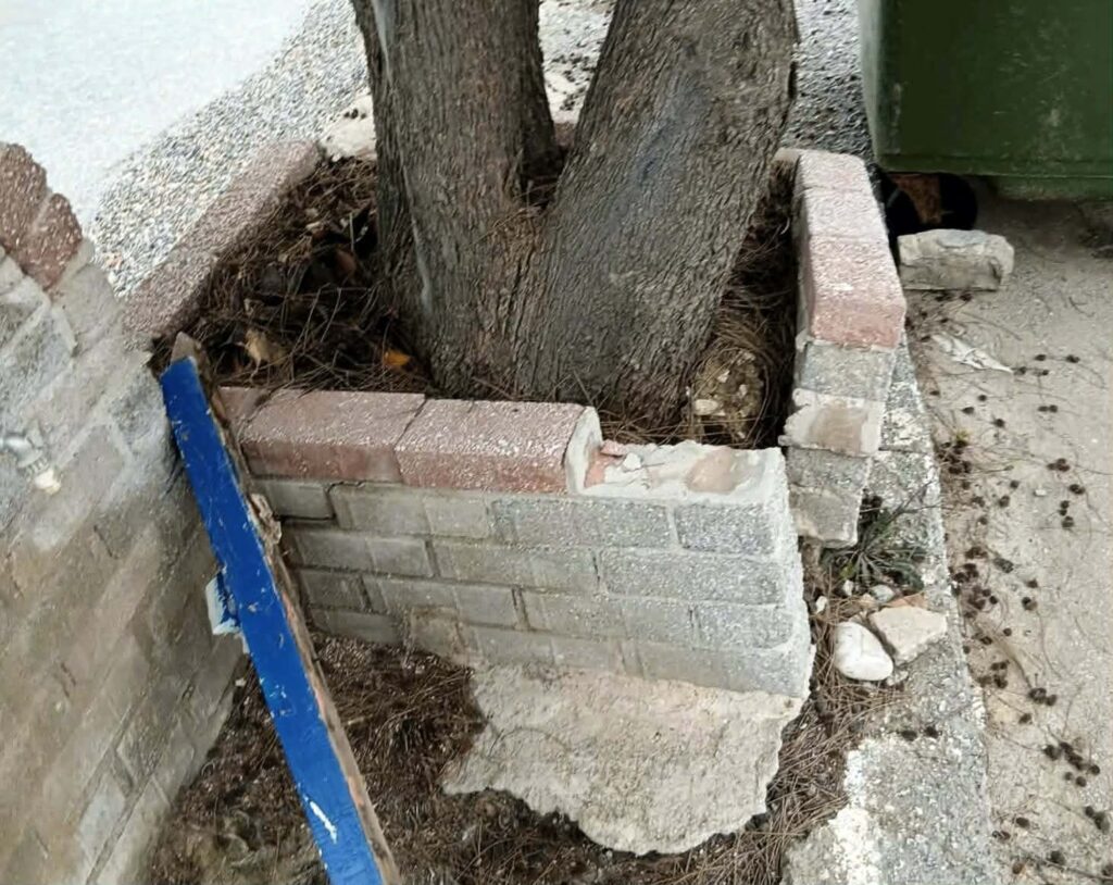 Στις φωτογραφίες αποτυπώνονται σπασμένες κατασκευές γύρω από δέντρα, φθαρμένα υλικά, αλλά και προβληματικά σημεία στην υποδομή, γεγονός που δημιουργεί ερωτήματα για τη συντήρηση του χώρου.