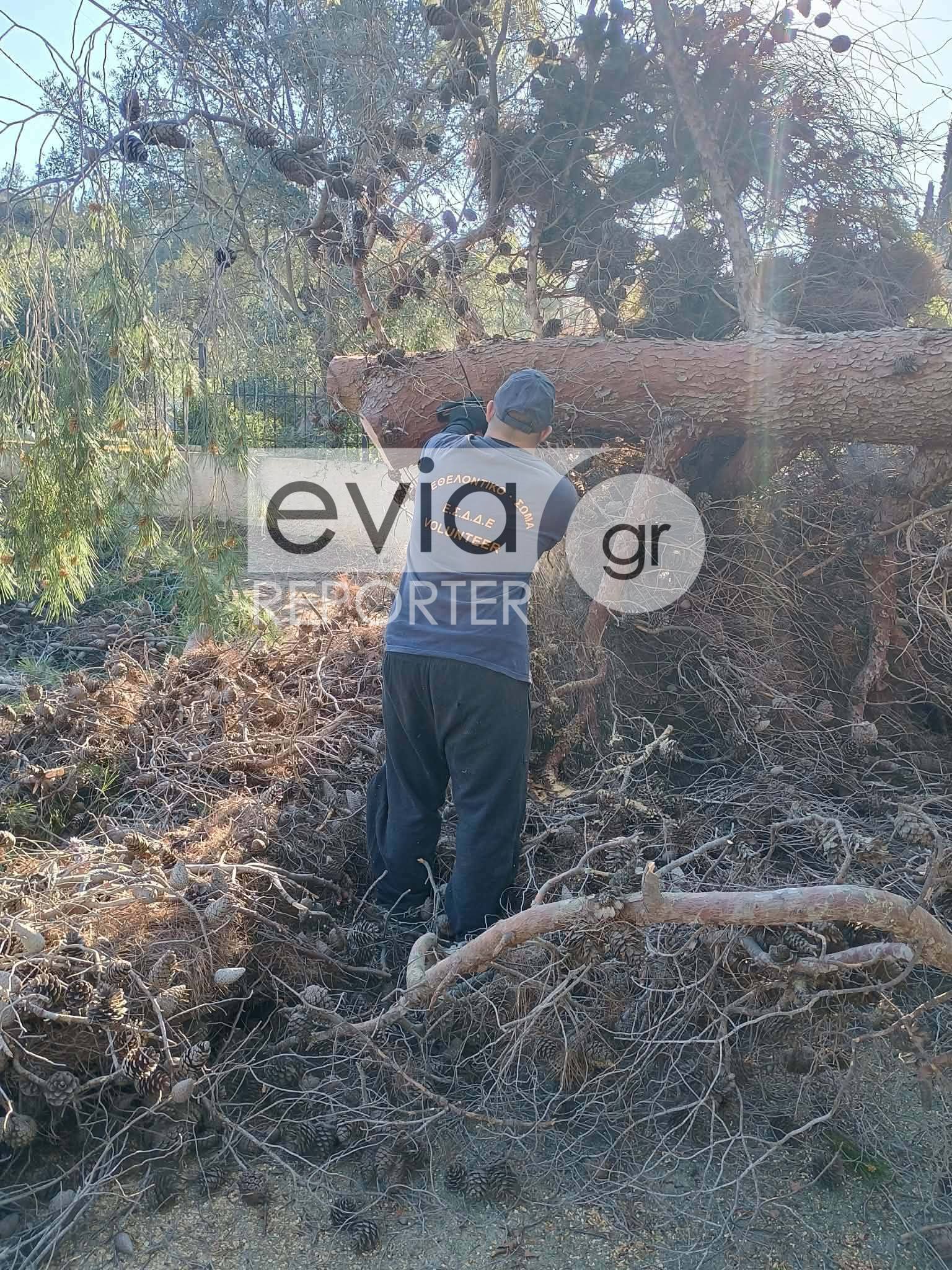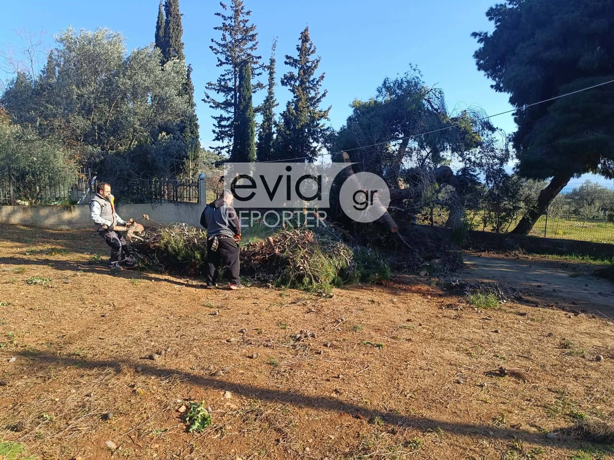 Παράλληλα, υπήρξε επικοινωνία με τον Αντιδήμαρχο Πρασίνου του Δήμου Ερέτριας, προκειμένου να απομακρυνθούν τα κλαδιά που έχουν συγκεντρωθεί σε παρακείμενο οικόπεδο.