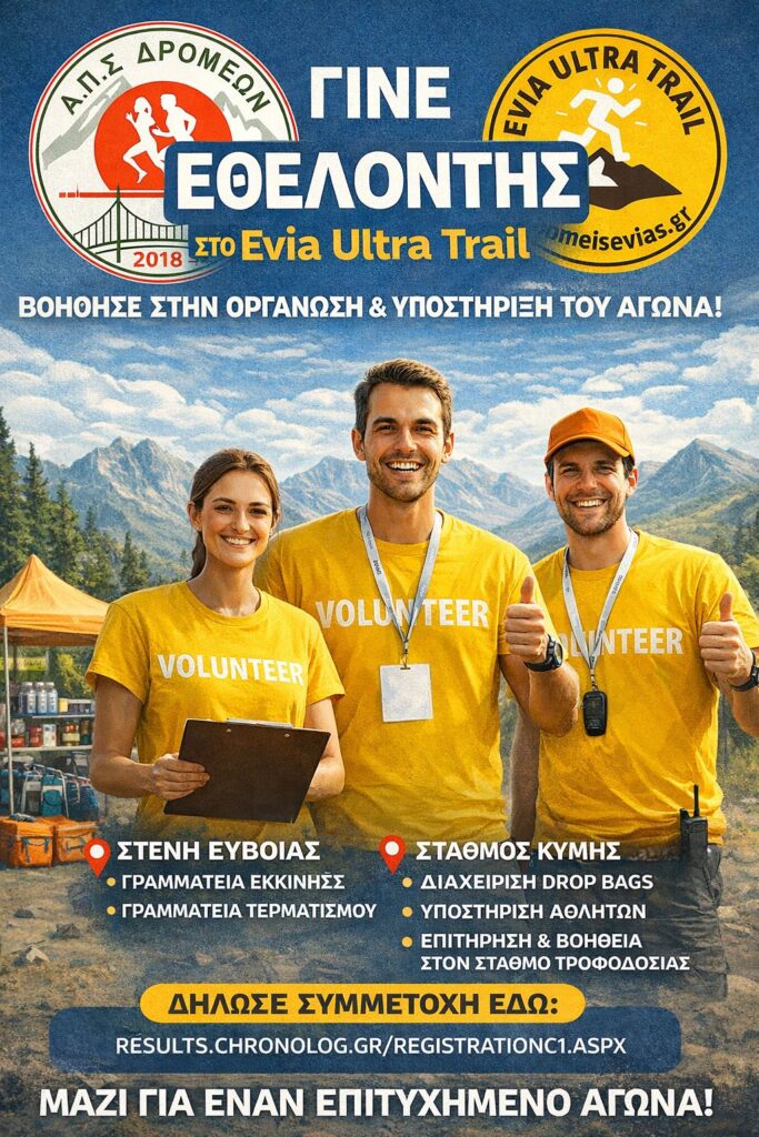 Στη Στενή Ευβοίας, οι εθελοντές θα στελεχώσουν τη γραμματεία εκκίνησης και τερματισμού, ενώ στον σταθμό της Κύμης θα αναλάβουν τη διαχείριση των drop bags, την υποστήριξη των αθλητών και τη βοήθεια στον σταθμό τροφοδοσίας.