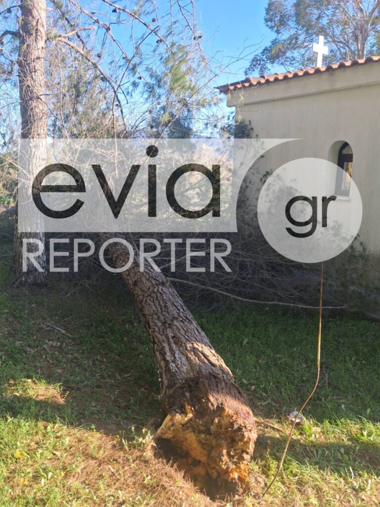 Πτώση δέντρου σημειώθηκε και στον προαύλιο χώρο του Ιερού Ναού Αγίας Τριάδας, στο Τοπικό Διαμέρισμα Κήπων της Δημοτικής Ενότητας Κονιστρών, στον Δήμο Κύμης – Αλιβερίου.