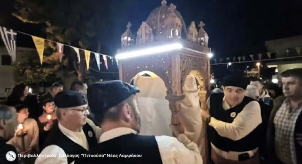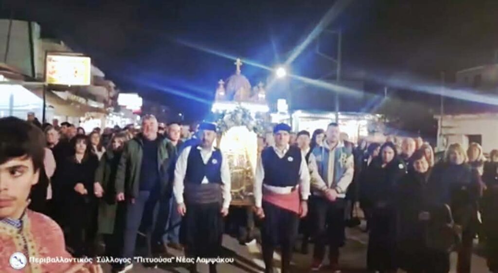 Με ιδιαίτερη λαμπρότητα, τιμές και τη μαζική συμμετοχή πιστών πραγματοποιήθηκε στη Νέα Λάμψακος ο εορταστικός Εσπερινός και η Λιτάνευση της Ιεράς Εικόνας του Άγιος Τρύφων, προστάτη των αμπελουργών και των γεωργών. Οι λατρευτικές εκδηλώσεις τελέστηκαν με τη συνοδεία του κλήρου, του Πολιτιστικού Συλλόγου «Αναξαγόρας», μαθητών του Δημοτικού Σχολείου Νέας Λαμψάκου, της φιλαρμονικής και πλήθους κόσμου.