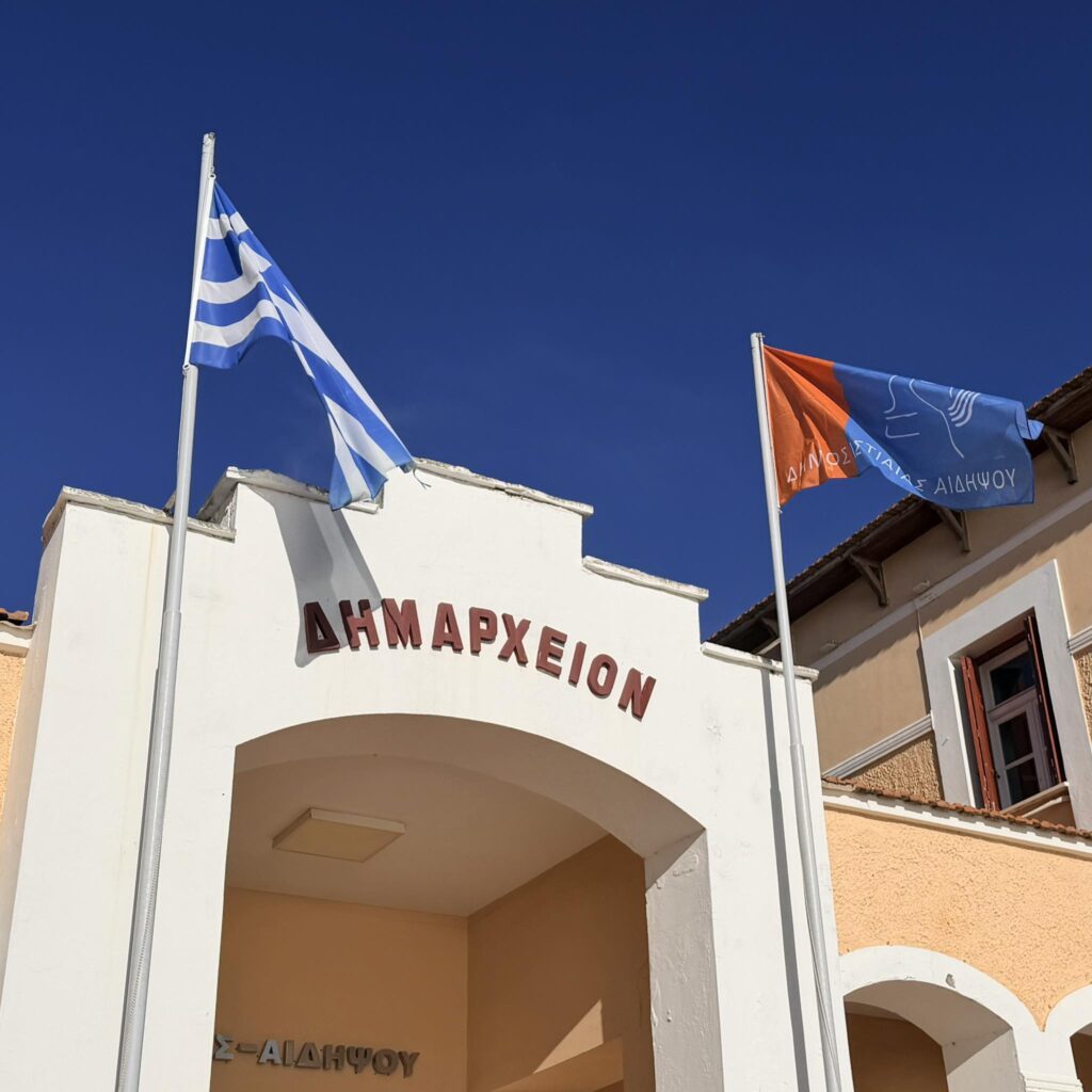 Ήδη, η σημαία του Δήμου Ιστιαίας – Αιδηψού με το νέο έμβλημα ανεμίζει περήφανα, σηματοδοτώντας μια νέα εποχή με σεβασμό στο παρελθόν και βλέμμα στραμμένο στο μέλλον.