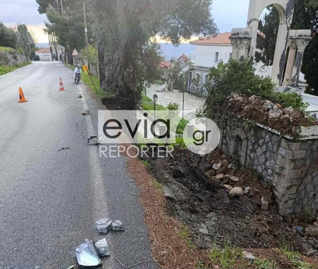 Σοβαρό περιστατικό σημειώθηκε στο Μυλωνοπούλειο Ίδρυμα, στην Κύμη της Εύβοιας, όταν κατέρρευσε μεγάλο τμήμα από το πέτρινο κτίσμα που βρίσκεται πάνω στον δρόμο.