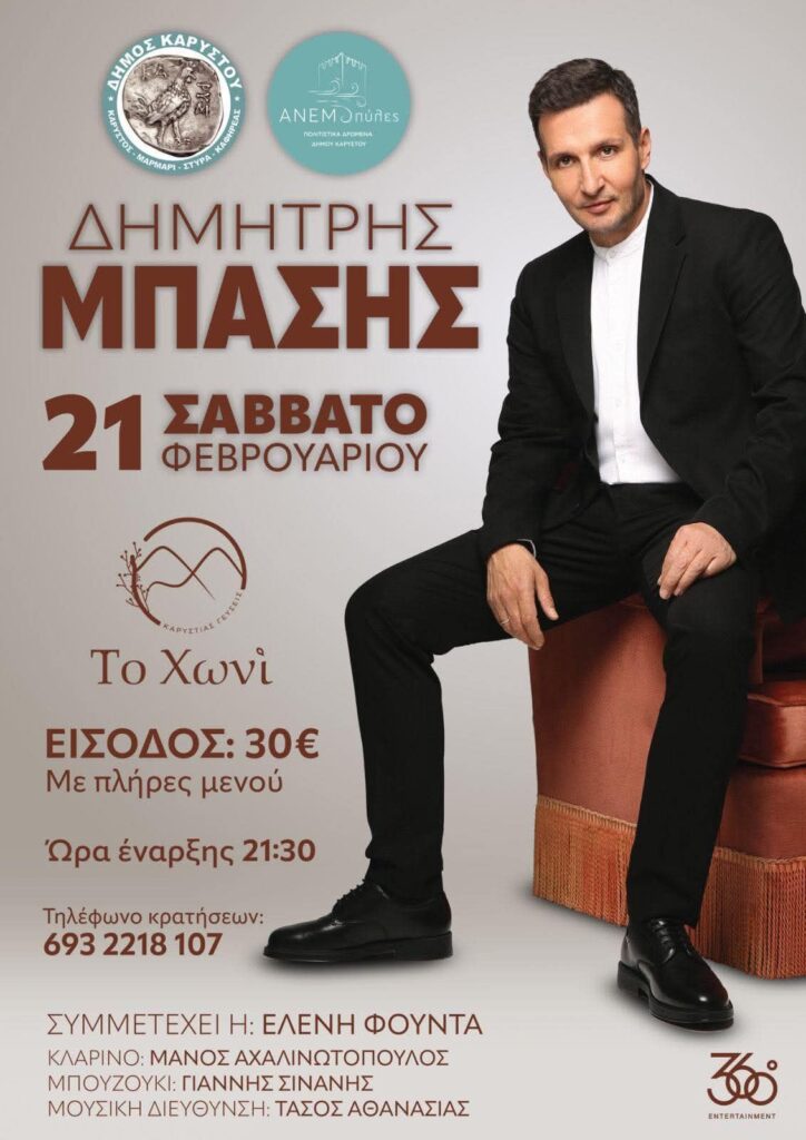 Τα Πολιτιστικά Δρώμενα του Δήμου Καρύστου δίνουν δυναμικά το σύνθημα των Αποκριών και της διασκέδασης, με μια ξεχωριστή μουσική βραδιά το Σάββατο 21 Φεβρουαρίου.