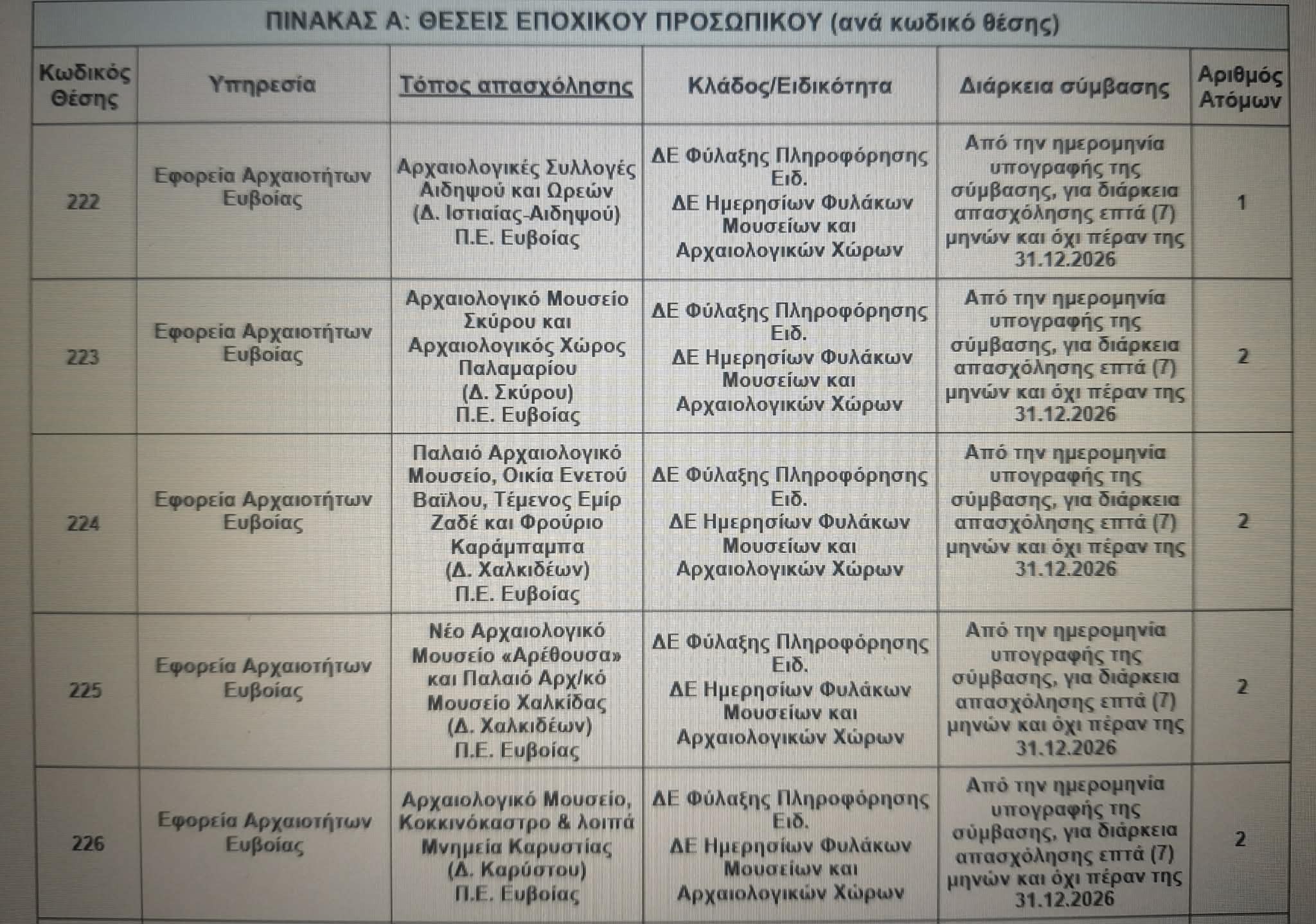 Την πρόσληψη συνολικά 1.538 ατόμων με σύμβαση εργασίας ιδιωτικού δικαίου ορισμένου χρόνου για την κάλυψη παροδικών αναγκών σε Αρχαιολογικούς Χώρους και Μουσεία της Γενικής Διεύθυνσης Αρχαιοτήτων & Πολιτιστικής Κληρονομιάς ανακοίνωσε το Υπουργείο Πολιτισμού.