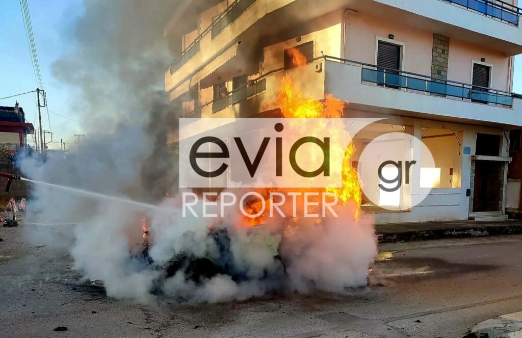 Εύβοια: Φωτιά σε αυτοκίνητο εν κινήσει – Πρόλαβαν και βγήκαν πατέρας και γιος