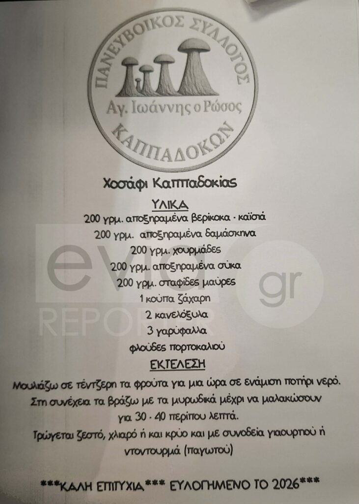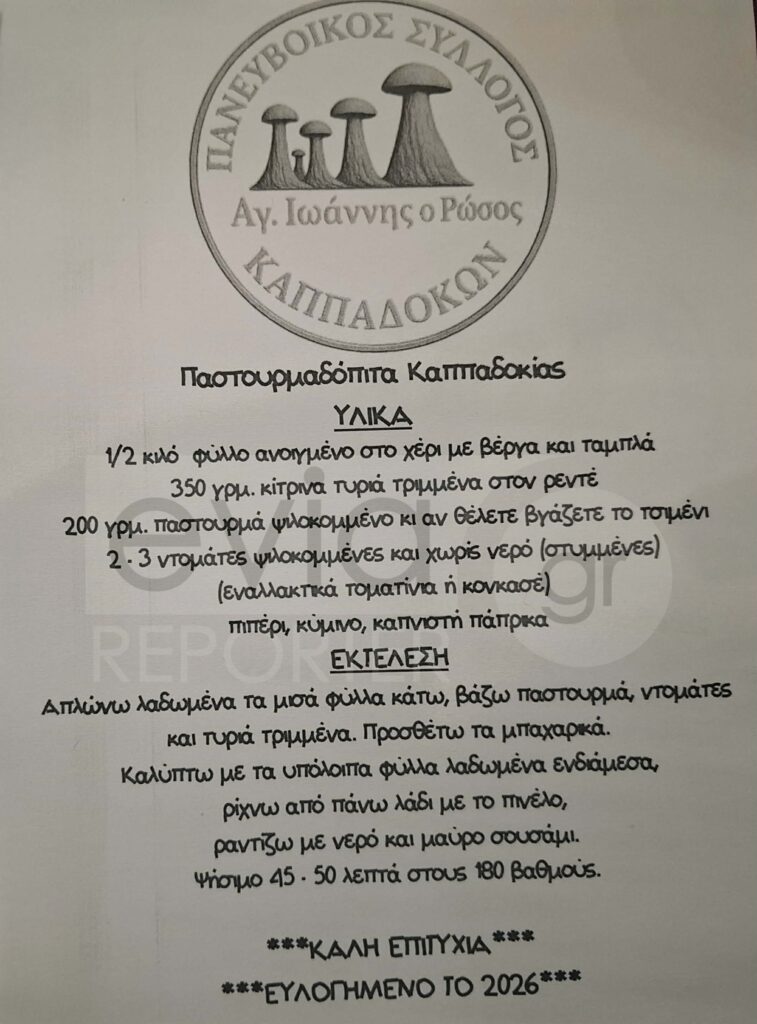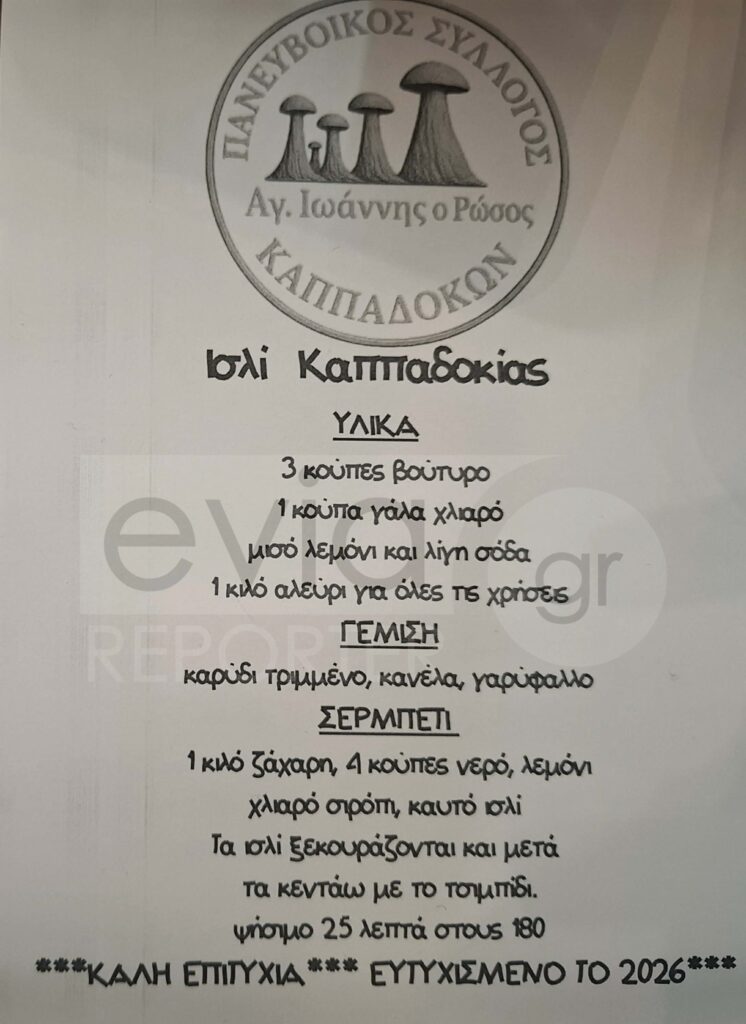 Ένα ξεχωριστό ταξίδι μνήμης και πολιτισμού είχαν την ευκαιρία να ζήσουν όσοι βρέθηκαν τη Δευτέρα 29 Δεκεμβρίου στο Δημαρχείο Χαλκίδας, στο διαδραστικό εργαστήρι καππαδοκικής γαστρονομίας που διοργάνωσε ο Πανευβοϊκός Σύλλογος Καππαδοκών «Άγιος Ιωάννης ο Ρώσος», σε συνεργασία με το Φιλανθρωπικό Ίδρυμα «Τάσος Γεωργιάδης».