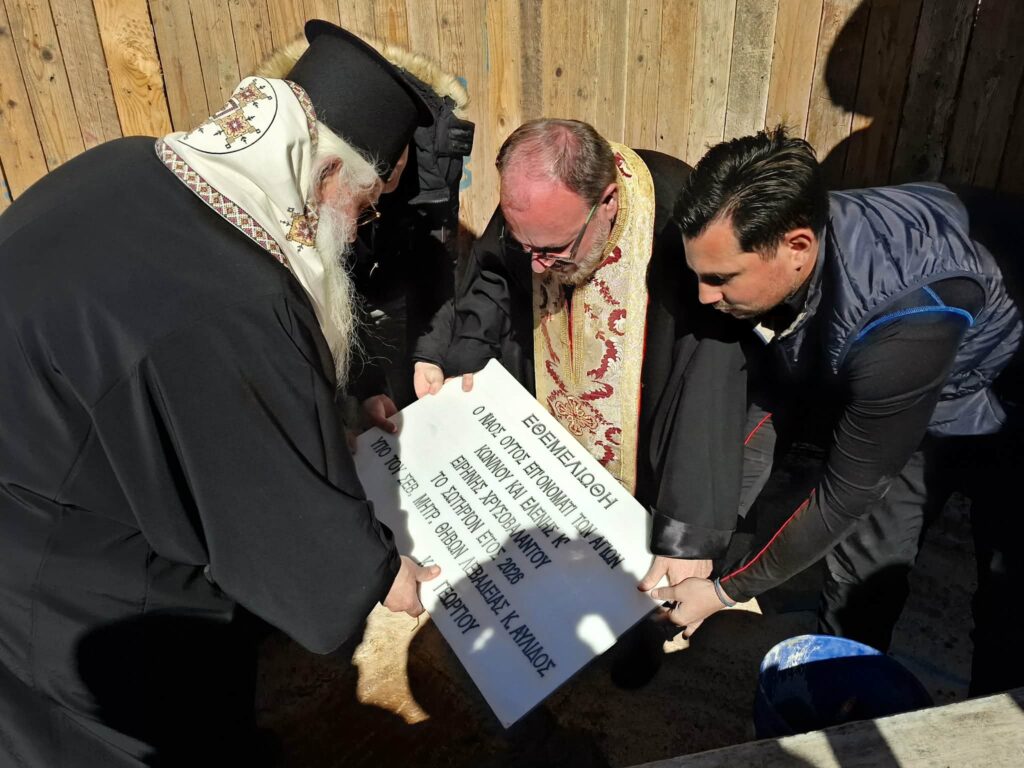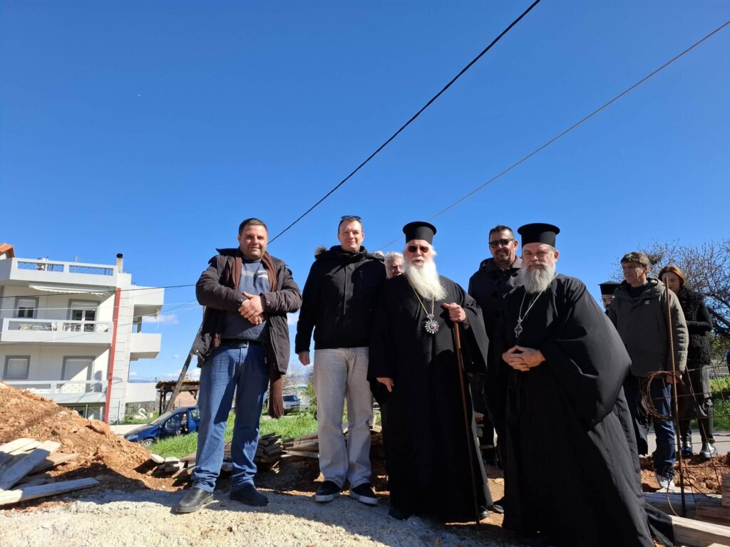Την Τετάρτη 18 Φεβρουαρίου ο Σεβασμιώτατος Μητροπολίτης Θηβών Λεβαδείας και Αυλίδος κ. Γεώργιος με την συμμετοχή του Αρχιερατικού Επίτροπου Αυλίδος Οικονόμο Κωνσταντίνο Κατσουλιέρη και τους εφημερίους των ιερών ναών Αγίου Γεωργίου Δροσιάς Οικονόμους Λάμπρο Συμιακάκη Διονύσιο Σούτζιο και ιερού ναού Μεταμορφώσεως του Σωτήρος Δροσιάς Δημήτριο Φατούρα και τον Διάκονο Θεόδωρο Ευταξία τέλεσε τον αγιασμό της θεμελιώσεως του πρώτου ιερού ναού επ’ ονόματι των Αγίων και Ισαποστόλων Κωνσταντίνου και Ελένης και της Οσίας μητρός Ειρήνης Χρυσοβαλάντου στον οικισμό Οντάθι Δροσιάς Χαλκίδος ενορίας Αγίου Γεωργίου Δροσιάς.