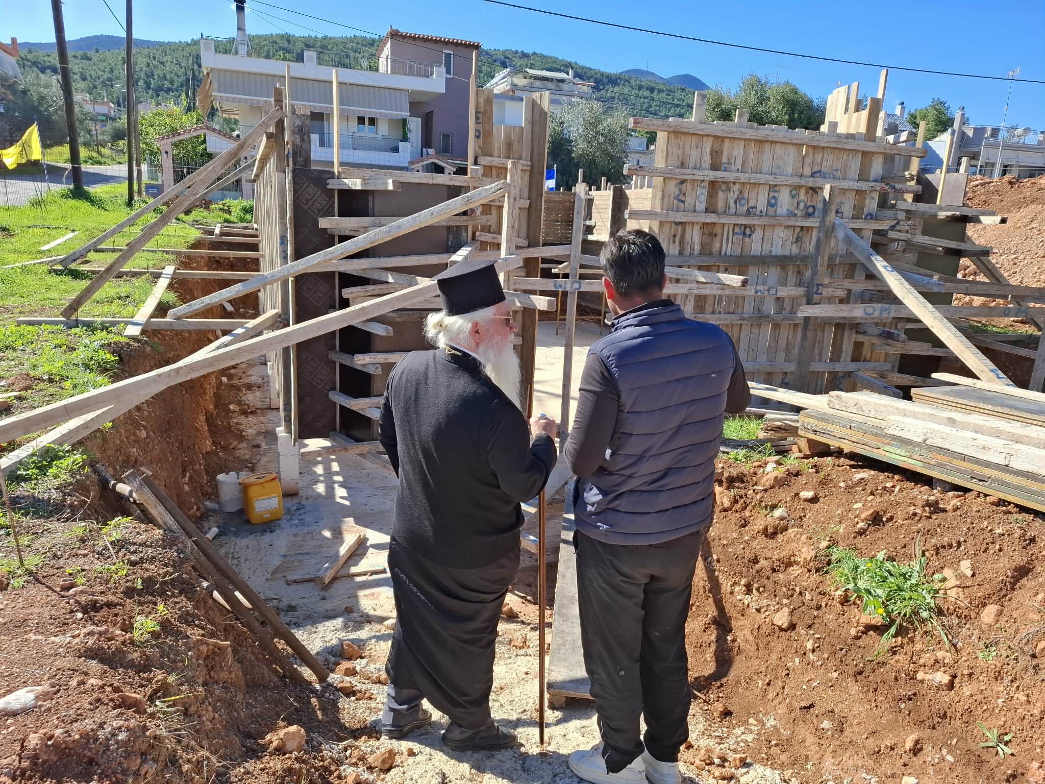 Στην συνέχεια ο Σεβασμιώτατος κ. Γεώργιος αναφέρθηκε στην σημασία της θεμελιώσεως και ανεργέσεως του ιερού ναού ο οποίος αποτελεί τόπος προσευχής και κοινής λατρείας των πιστών όπου διοχετεύεται η χάρις του θεού.