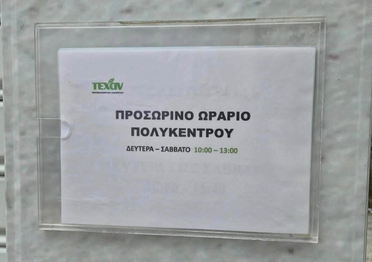 Σύμφωνα με την ίδια, τα Πολυκέντρα εμφανίζουν μειωμένο ωράριο λειτουργίας, καθώς από το προβλεπόμενο 10:00 – 16:40, καταγράφεται λειτουργία μόλις τριών ωρών, από τις 10:00 έως τις 13:00, χωρίς –όπως τονίζεται– να έχει προηγηθεί σχετική ενημέρωση προς τους πολίτες.