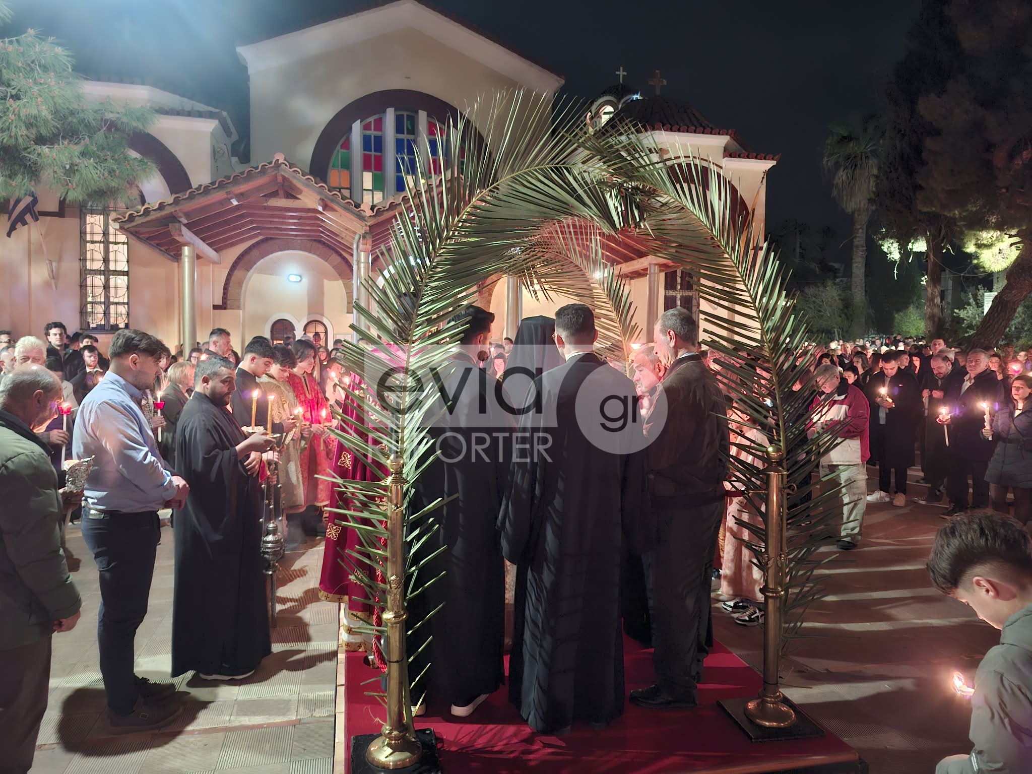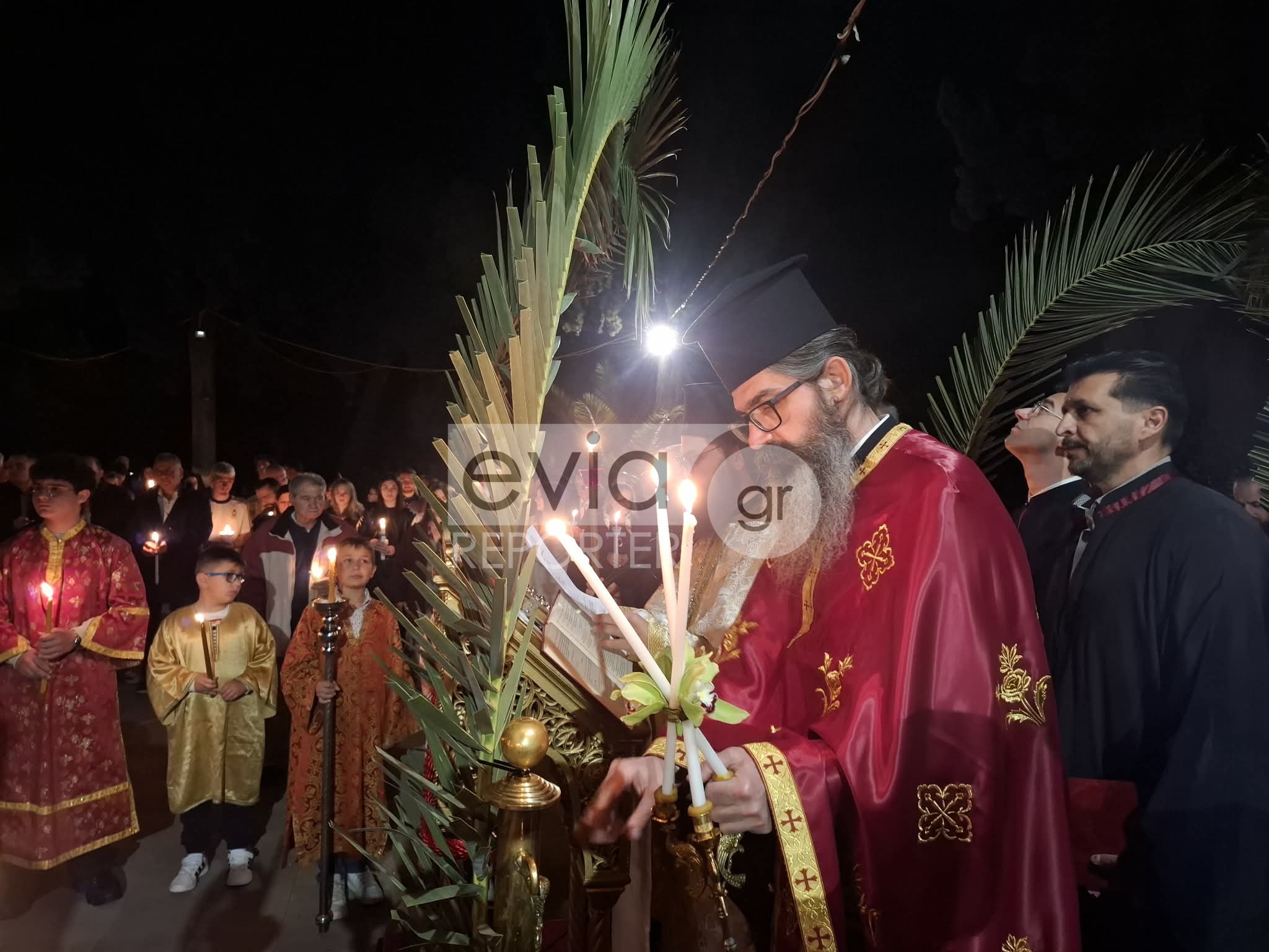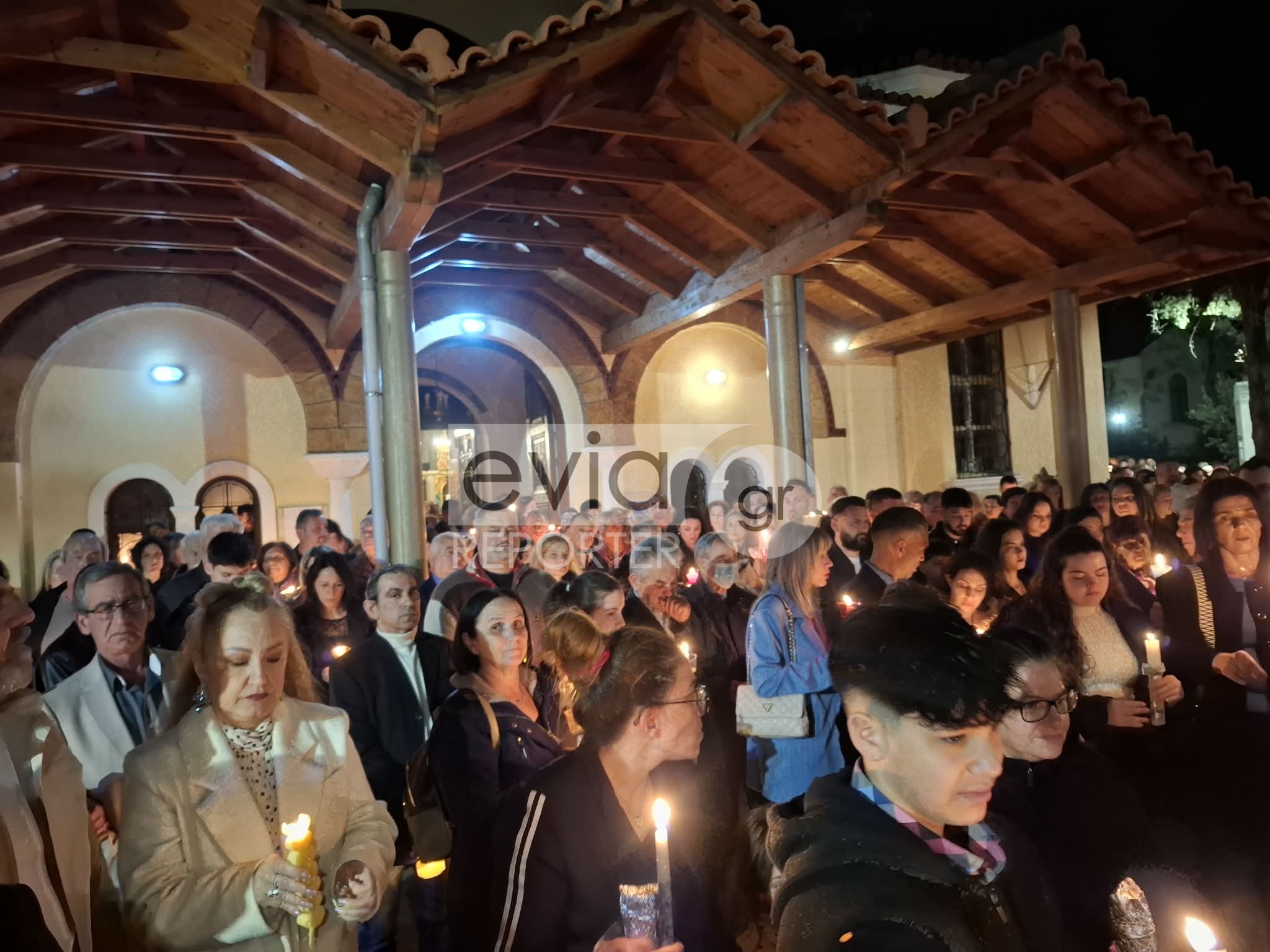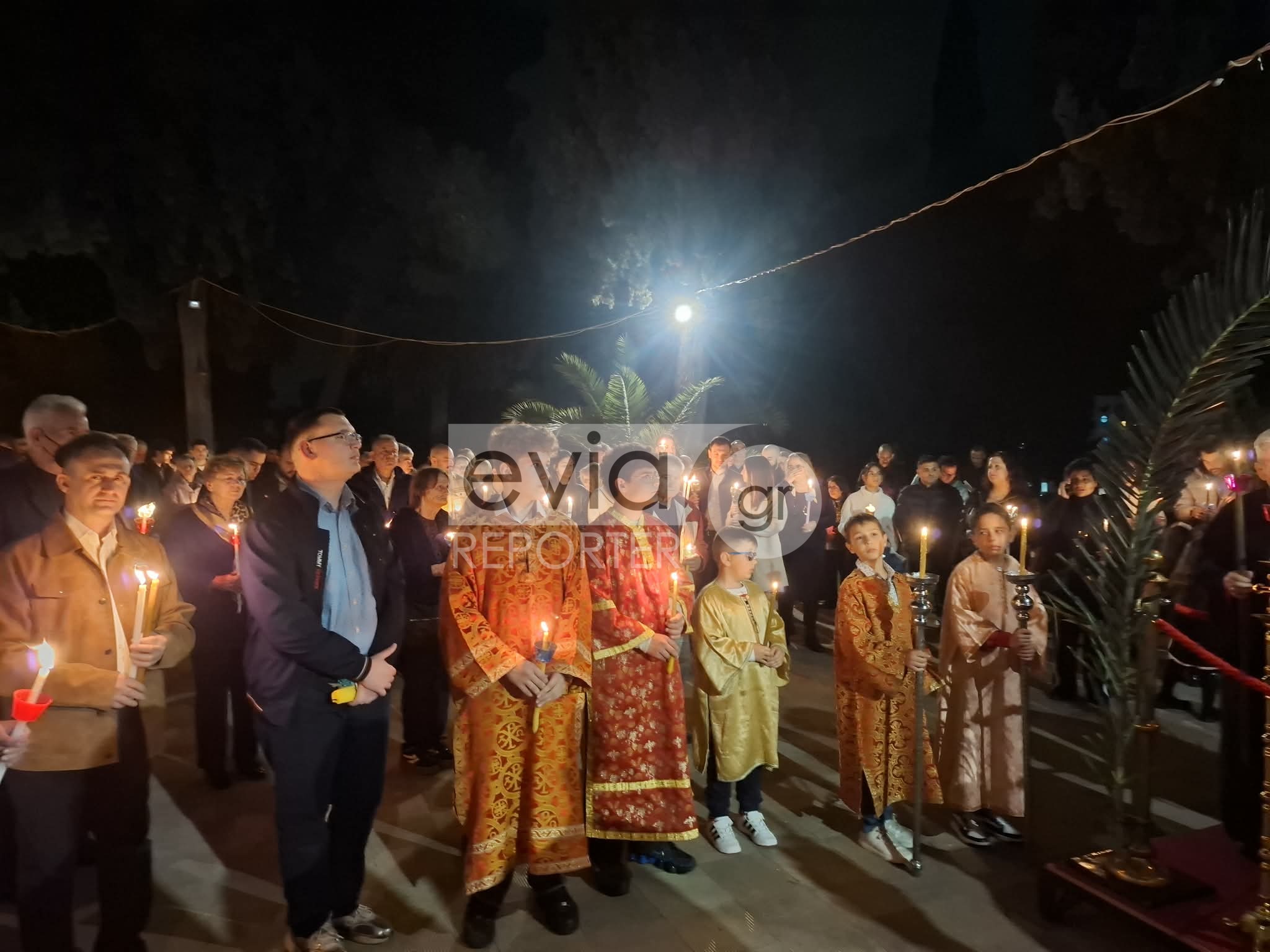 Σε κλίμα βαθιάς κατάνυξης αλλά και εορταστικής λαμπρότητας τελέστηκε η Ανάσταση στον Ιερό Ναό Αγίου Ιωάννου στη Χαλκίδα, το βράδυ του Μεγάλου Σαββάτου.