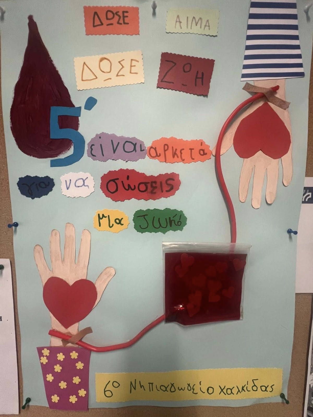 Μια ξεχωριστή δράση ενημέρωσης και ευαισθητοποίησης για την εθελοντική αιμοδοσία πραγματοποιήθηκε στο 6ο Νηπιαγωγείο Χαλκίδας, στο πλαίσιο του Πανελλήνιου Σχολικού Διαγωνισμού «ΣΧΟΛΕΙΑ – ΓΕΦΥΡΕΣ ΖΩΗΣ».