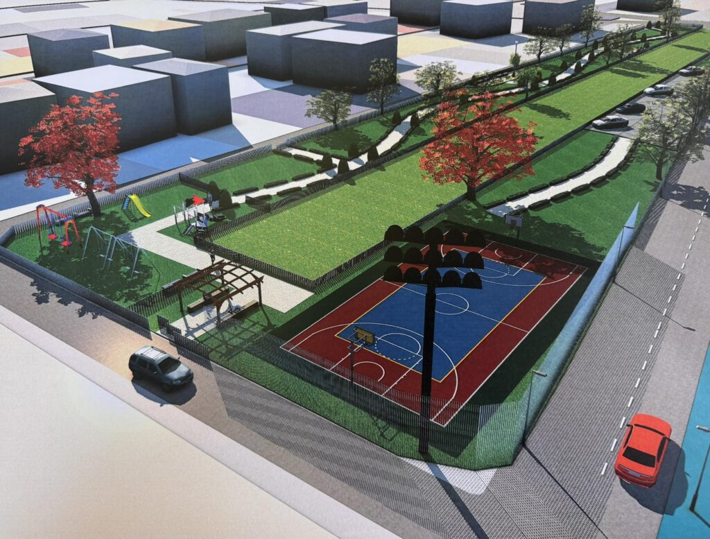 Σύμφωνα με τον σχεδιασμό, ο νέος χώρος θα περιλαμβάνει γήπεδο μπάσκετ, παιδική χαρά, πέργκολα με καθιστικά, χώρους παρτεριών με καθιστικά, διαδρόμους περιπάτου, χώρο στάθμευσης, περίφραξη, καθώς και φύτευση με γκαζόν και χαμηλούς θάμνους.