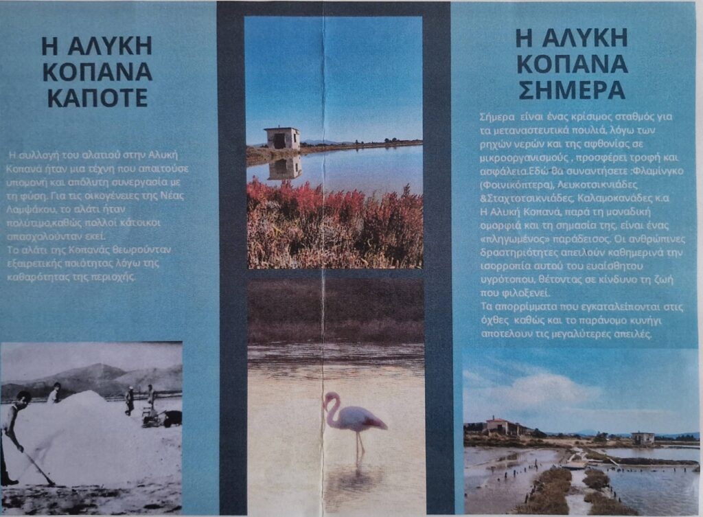 Οι μαθητές επισκέφθηκαν πόρτα-πόρτα καταστήματα και κατοίκους του χωριού, μεταφέροντας το μήνυμα της προστασίας και ανάδειξης ενός ιδιαίτερου φυσικού πλούτου της περιοχής, των Αλυκών Κοπανά. Μέσα από απλή αλλά ουσιαστική επικοινωνία, παρουσίασαν τον υγρότοπο ως έναν «κρυμμένο θησαυρό», τονίζοντας τη σημασία του για το φυσικό περιβάλλον και την τοπική οικολογική ισορροπία.