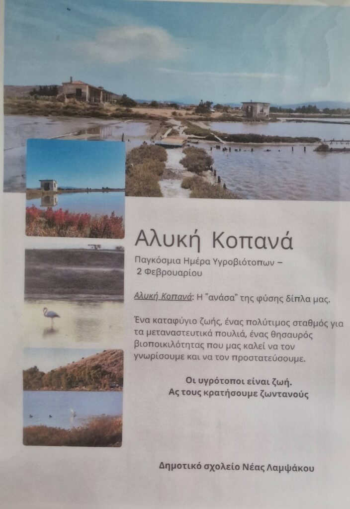 Μια ξεχωριστή και ιδιαίτερα αξιέπαινη περιβαλλοντική πρωτοβουλία πραγματοποίησαν οι μαθητές του Δημοτικού Σχολείου Νέας Λαμψάκου, με αφορμή την Παγκόσμια Ημέρα Υγροτόπων, στις 2 Φεβρουαρίου. Με την καθοδήγηση των εκπαιδευτικών τους, τα παιδιά βγήκαν έξω από τα όρια της σχολικής αίθουσας και ανέλαβαν ενεργό ρόλο ενημέρωσης της τοπικής κοινωνίας.