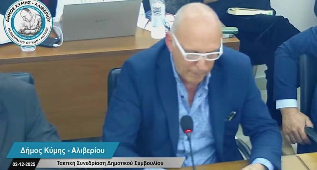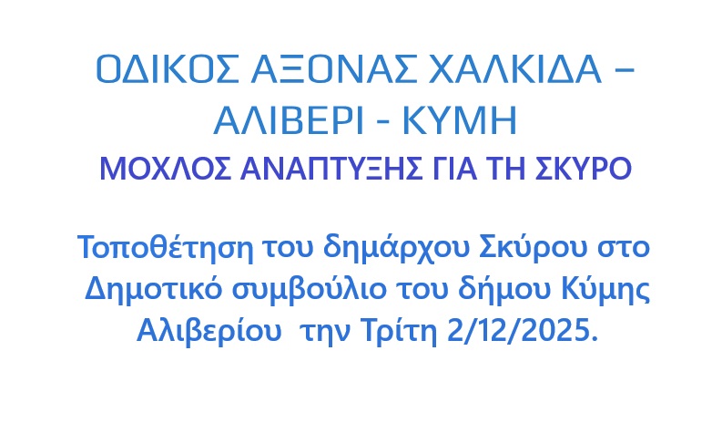 ΤΟΠΟΘΕΤΗΣΗ ΤΟΥ ΔΗΜΑΡΧΟΥ ΣΚΥΡΟΥ ΓΙΑ ΤΟ ΔΡΟΜΟ ΧΑΛΚΙΔΑΣ ΚΥΜΗΣ στο Δημοτικό Συμβούλιο του Δήμου Κύμης Αλιβερίου την 2/12/2025 που ειχε θέμα: