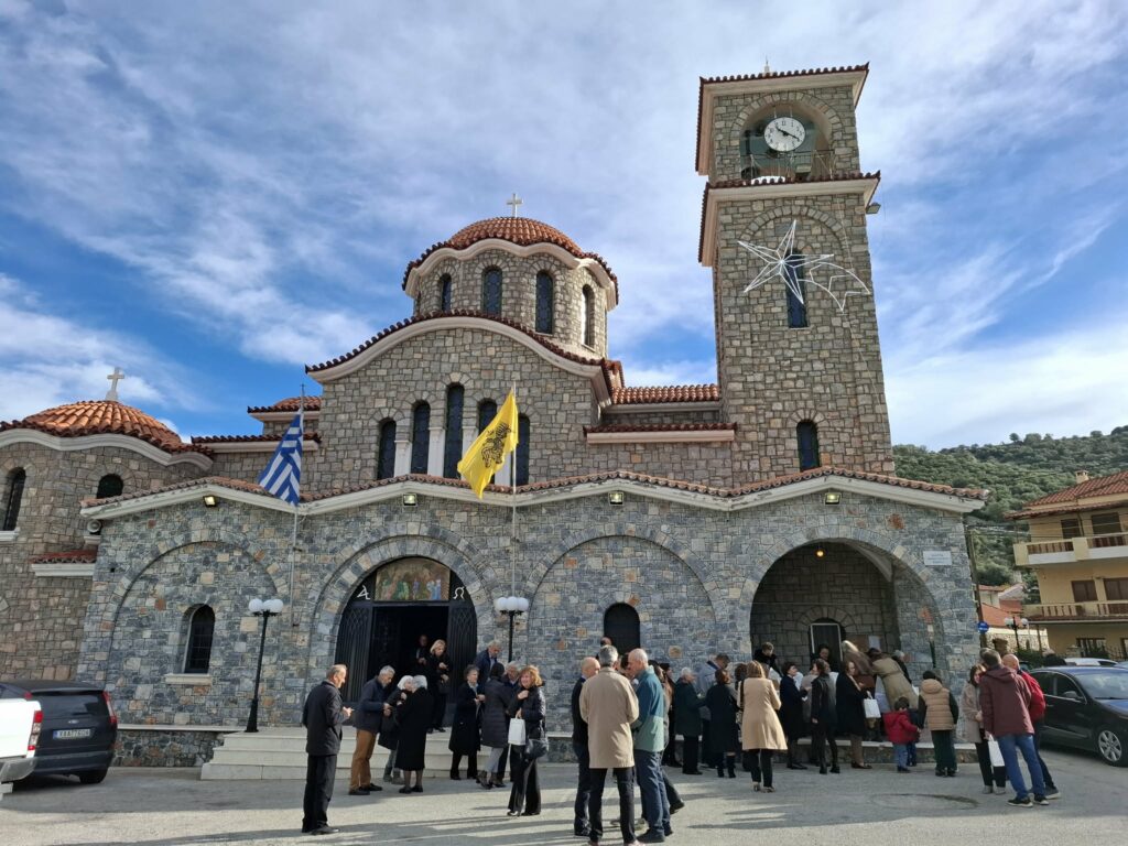 Στην συνέχεια ο Σεβασμιώτατος κ. Σεραφείμ επιστρέφοντας προς την Κύμη μετέβη με τους συνοδούς του ιερείς στο κέντρο Λαμπούσα στο Νεοχώρι όπου ευλόγησε την Αγιοβασιλειόπιτα της Διευθύνσεως ΔΕΗ ΑΗΣ Αλιβερίου παρουσία του Διευθυντού της ΔΕΗ ΑΗΣ Αλιβερίου κ. Δημητρίου Κοτρογιάννη των στελεχών ΔΕΗ ΑΗΣ των Βουλευτών Ευβοίας κ. Αθανασίου Ζεμπίλη κ.Κωνσταντίνας Καραμπατσώλη κ. Αικατερίνης Καζάνη του Δημάρχου Αλιβερίου – Κύμης κ. Νικολάου Μπαράκου των Αντιδημάρχων Αλιβερίου κ. Νικολάου Μαστροκώστα κ. Γεωργίου Στρουμπούλη Ερέτριας κ. Γεωργίου Κατέβα και του Δημοτικού Συμβούλου και Αντιπροέδρου ΔΕΥΑ Αλιβερίου Κύμης κ. Γεωργίου Παπαδιόχου