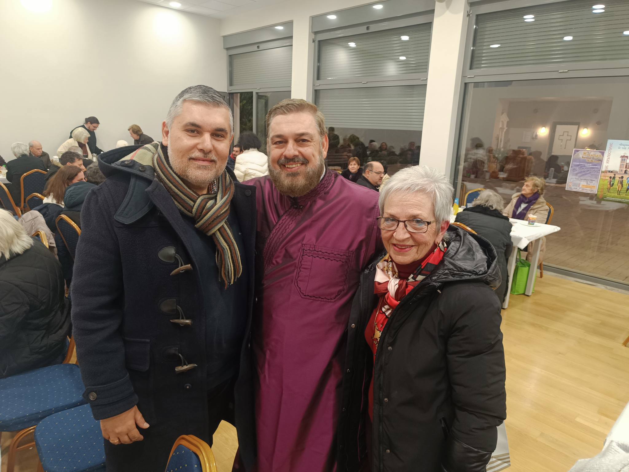 Πλήθος πιστών κατέκλυσε τον ιερό χώρο, αλλά και την παρακείμενη τραπεζαρία, συμμετέχοντας με ευλάβεια στην κατανυκτική ακολουθία. Ξεχωριστή ήταν η παρουσία προσκυνητών από την Αττική, οι οποίοι, με επικεφαλής τον π. Ιωάννη Βεργόπουλο, προσήλθαν για να τιμήσουν τη μνήμη των Αγίων και να συμπροσευχηθούν με το εκκλησίασμα.