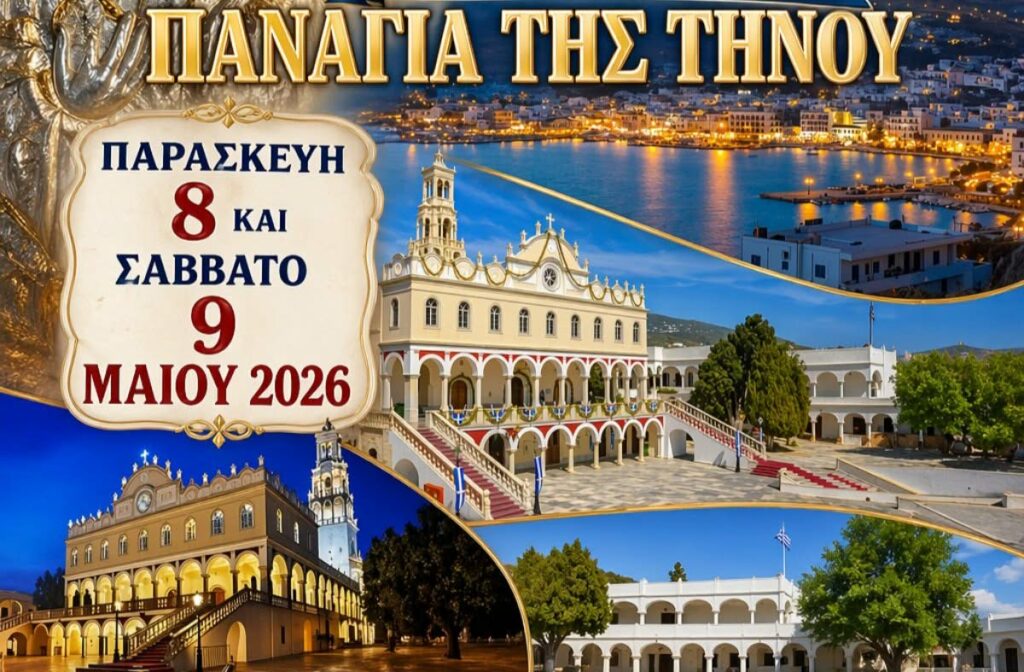Η εκδρομή θα πραγματοποιηθεί την Παρασκευή 8 και το Σάββατο 9 Μαΐου 2026, με προορισμό τον Ιερό Ναό της Μεγαλόχαρης στην Τήνο, έναν από τους σημαντικότερους τόπους προσκυνήματος της Ορθοδοξίας.