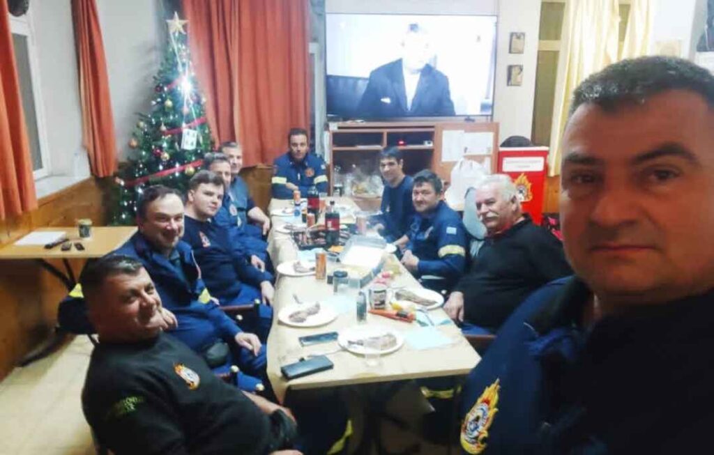 Λίγα λεπτά πριν από την αλλαγή του χρόνου, την ώρα που τα περισσότερα σπίτια ετοιμάζονταν να υποδεχθούν το νέο έτος, οι πυροσβέστες που βρίσκονταν σε υπηρεσία στην Πυροσβεστική Υπηρεσία Χαλκίδας γιόρτασαν με τον δικό τους τρόπο την έλευση του 2026.