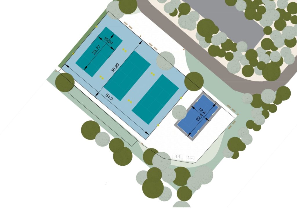 Η πρόταση περιλαμβάνει τη δημιουργία τριών γηπέδων τένις και ενός γηπέδου padel στον περιβάλλοντα χώρο του κλειστού γυμναστηρίου τύπου «μπαλόνι» στην Ερέτρια, ενισχύοντας σημαντικά τις διαθέσιμες αθλητικές επιλογές για τους δημότες.
