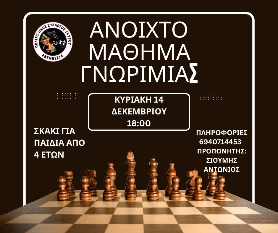Ιδιαίτερη χαρά προκάλεσε επίσης η συνέχεια που έδωσε στις δράσεις των ημερών ο Πολιτιστικός Σύλλογος Ανεμόεσσα, εγκαινιάζοντας μαθήματα σκάκι για παιδιά, με ανοιχτό εισαγωγικό μάθημα την Κυριακή στις 18:00.