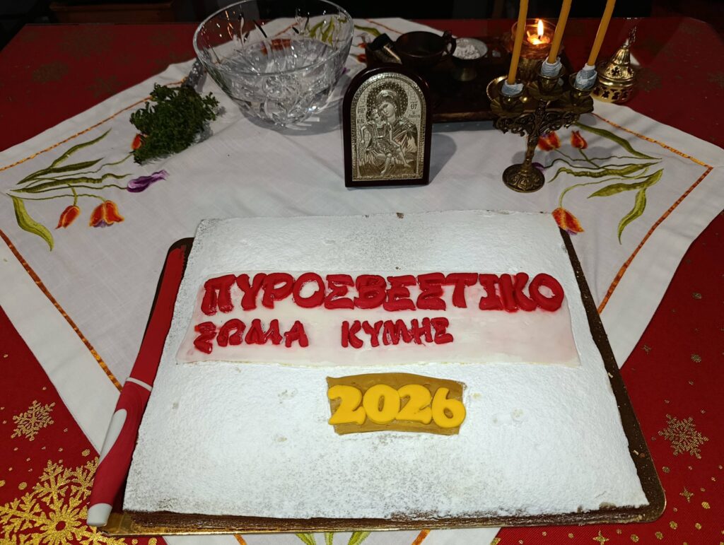 Με ιδιαίτερη συγκίνηση πραγματοποιήθηκε η κοπή της βασιλόπιτας του Πυροσβεστικού Κλιμακίου Κύμης, παρουσία του Σεβασμιωτάτου Μητροπολίτου Καρυστίας και Σκύρου κ.κ. Σεραφείμ, του Προϊσταμένου του Κλιμακίου κ. Δημήτρη Η. Δεμερούτη και σύσσωμου του προσωπικού.