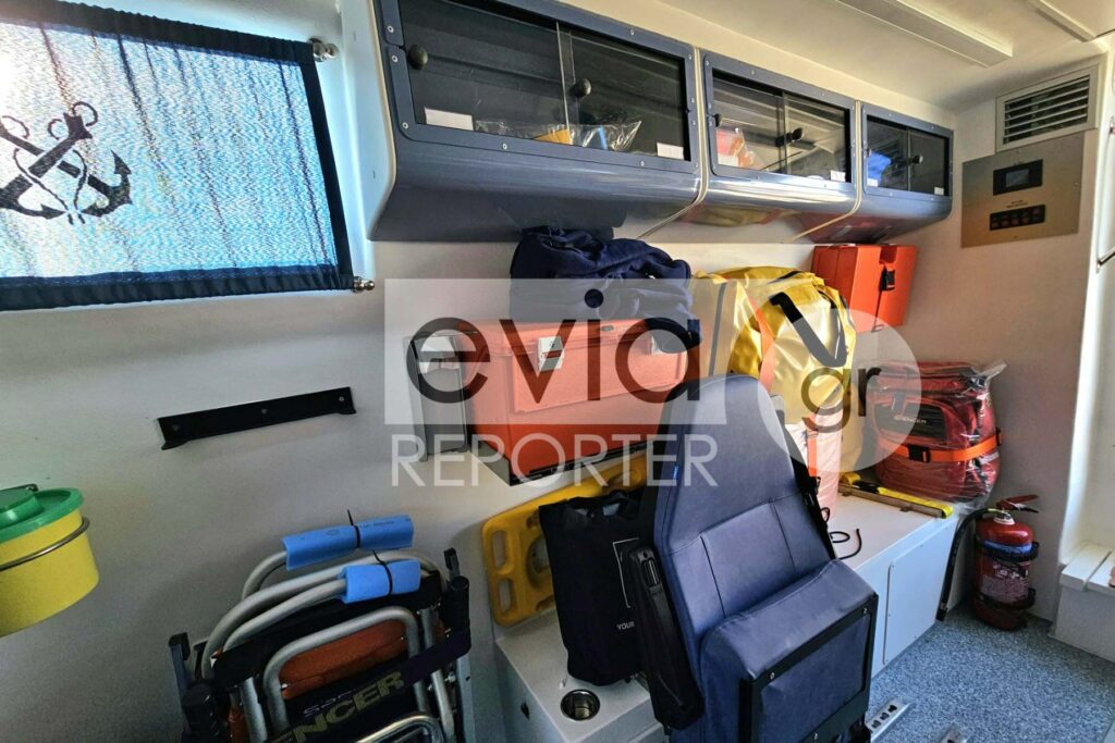 Σας παρουσιάζουμε το σκάφος σύγχρονης τεχνολογίας, πλήρως εξοπλισμένο όπως ένα ασθενοφόρο ξηράς, ικανό να επιχειρεί ακόμη και σε δύσκολες θαλάσσιες συνθήκες. Το πλωτό ασθενοφόρο έχει μήκος 14 μέτρα, διαθέτει δύο κινητήρες 350 ίππων και αναπτύσσει ταχύτητα που ξεπερνά τα 45 ναυτικά μίλια την ώρα, επιτρέποντας ταχύτατες διακομιδές.