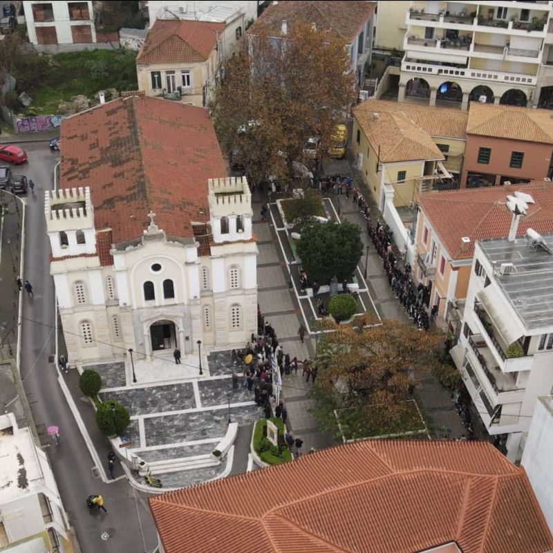 Και το δεύτερο αφορά εσάς όλους. Μου ήρθε στο νου ένα τραγούδι που λέγαμε εμείς όταν ήμασταν μικρότεροι και πηγαίναμε στα κατηχητικά και είχε τίτλο «Τα χριστιανόπουλα», που λέει: «τίποτα στο δρόμο δε μας σκιάζει, ούτε η μπόρα, ούτε το χαλάζι». Και για να ‘μαι ειλικρινής, όταν έβλεπα από τον Ι. Ναό τις ομπρέλες, έλεγα από μέσα μου, κρίμα τον κόπο των ανθρώπων, αλλά, βλέπεις, ο Θεός άλλα κελεύει, γιατί είδε ότι εσείς δεν φύγατε και δεν το βάλατε στα πόδια, αλλά μείνατε χωρίς να φοβόσαστε ούτε τη μπόρα, ούτε το χαλάζι.