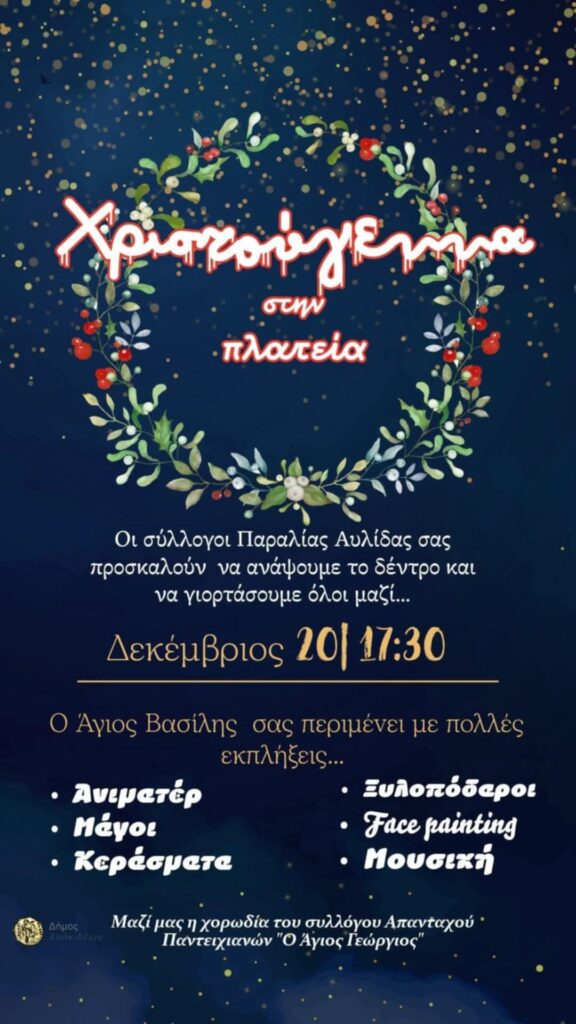 Σε χριστουγεννιάτικους ρυθμούς μπαίνει η Παραλία Αυλίδας, με τους τοπικούς συλλόγους να προσκαλούν μικρούς και μεγάλους σε μια γιορτή γεμάτη φως, μουσική και χαμόγελα.
