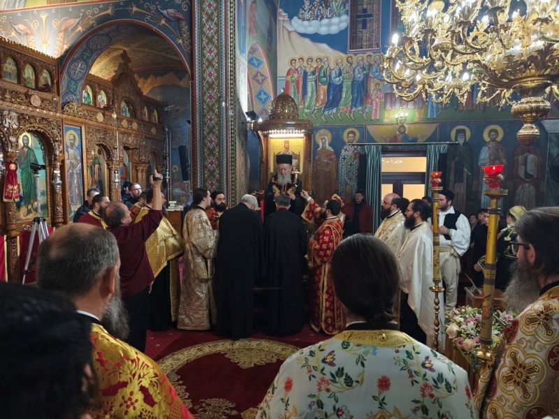 Το πρωί εψάλη ο Όρθρος, στον οποίον χοροστάτησε ο άγιος Χαλκίδος, ενώ εν συνεχεία ετελέσθη Αρχιερατικό Συλλείτουργο, με την συμμετοχή των αναφερθέντων Αρχιερέων και πολλών Ιερέων, εκ της Τοπικής μας Εκκλησίας, αλλά και άλλων Ιερών Μητροπόλεων.