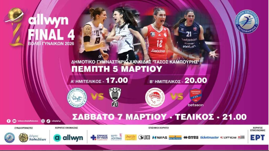 Allwyn Final 4 Κυπέλλου Βόλεϊ Γυναικών 2026 στη Χαλκίδα – Το πρόγραμμα και οι δωρεάν προσκλήσεις