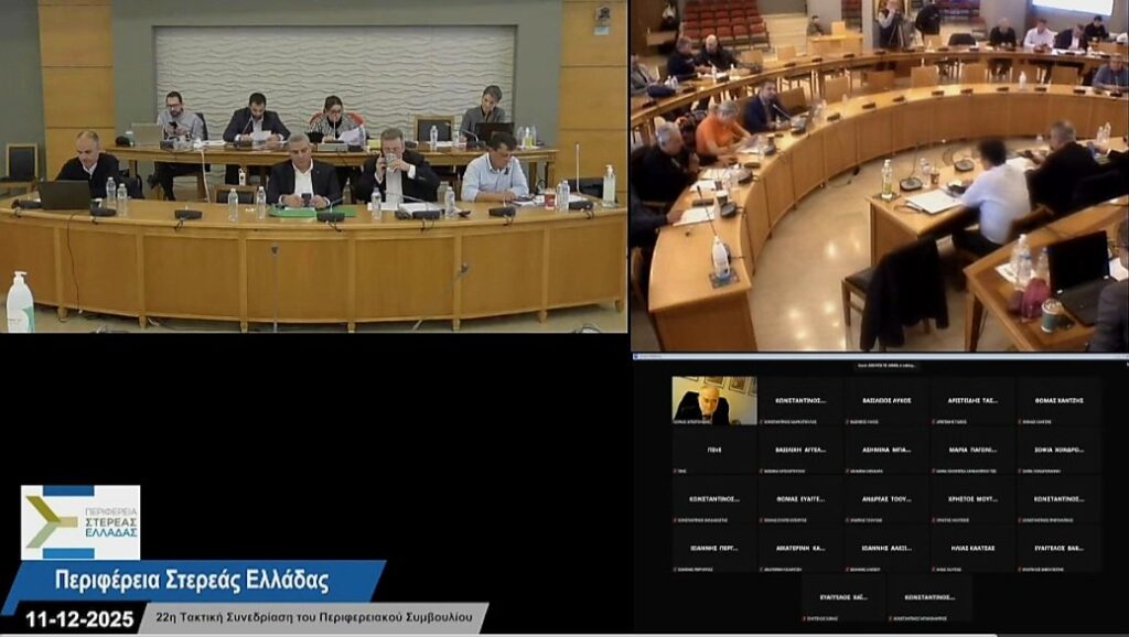 Σήμερα Πέμπτη 11 Δεκεμβρίου 2025 και ώρα 10:00 το πρωί συνεδριάζει το Περιφερειακό Συμβούλιο της Περιφέρειας Στερεάς Ελλάδας, σε τακτική συνεδρίαση που θα πραγματοποιηθεί με μικτό τρόπο, δια ζώσης και μέσω τηλεδιάσκεψης.